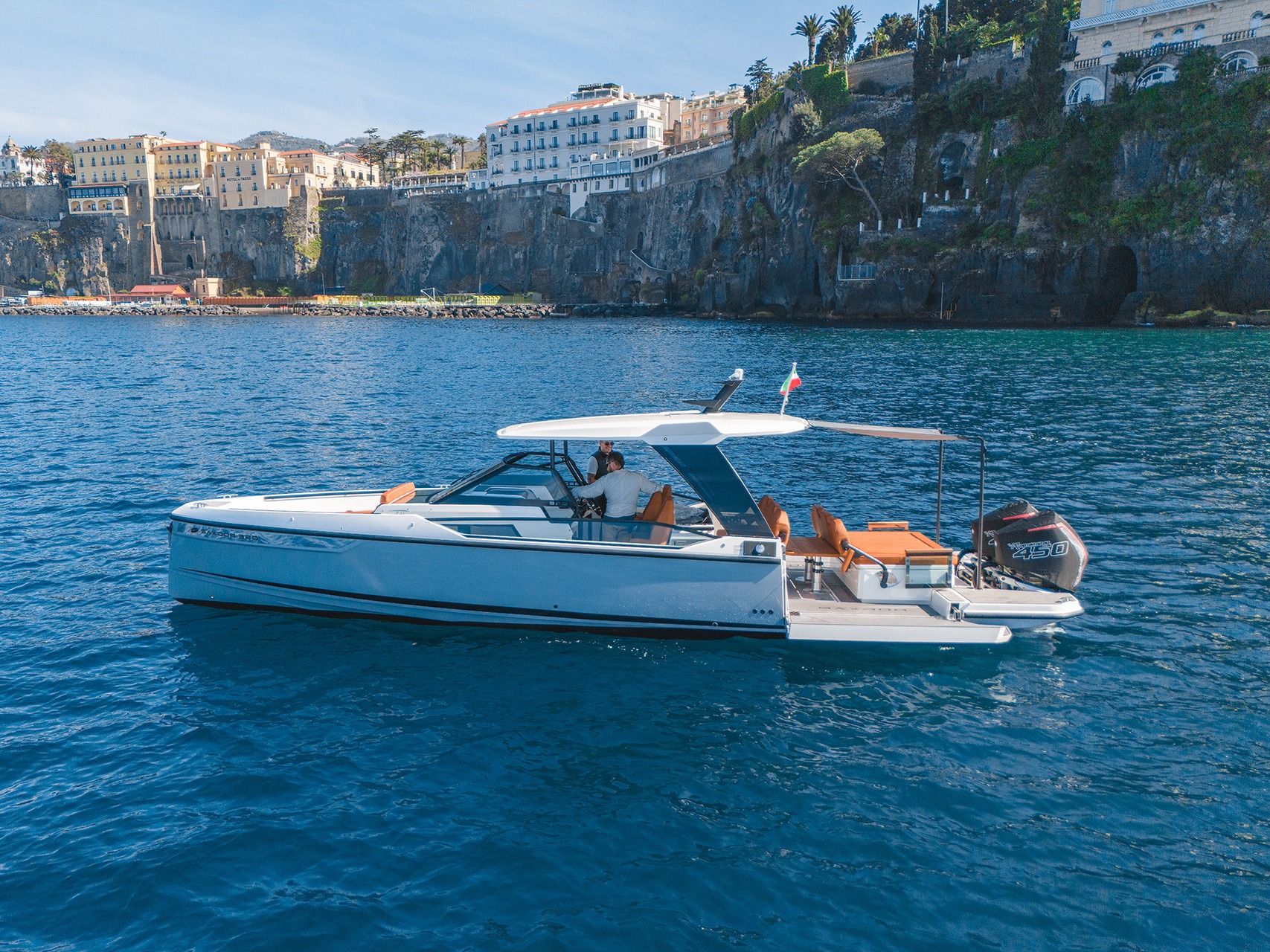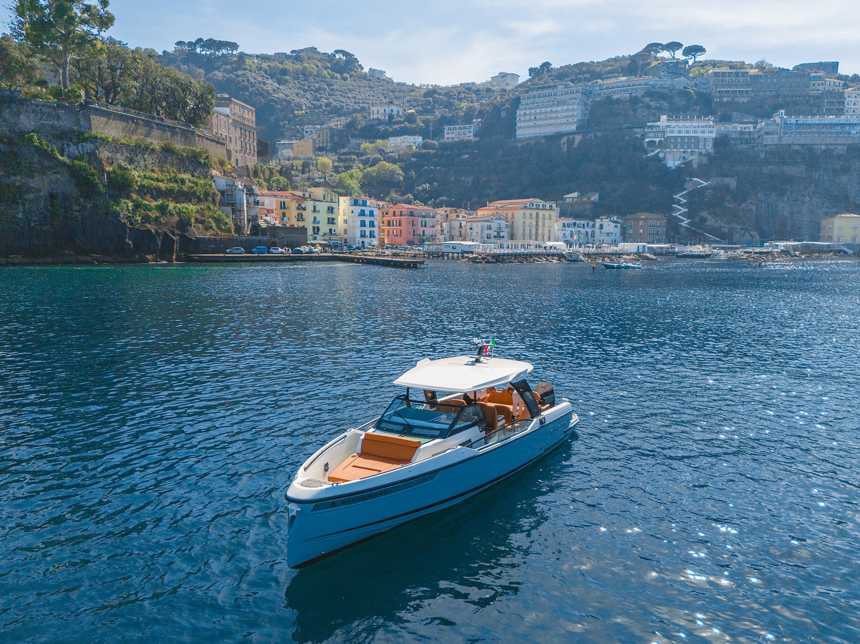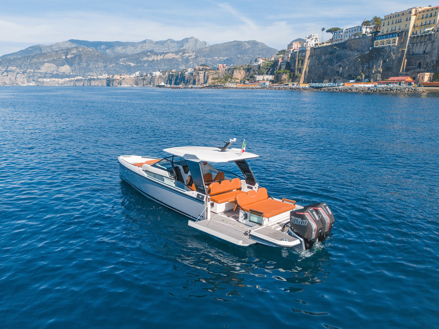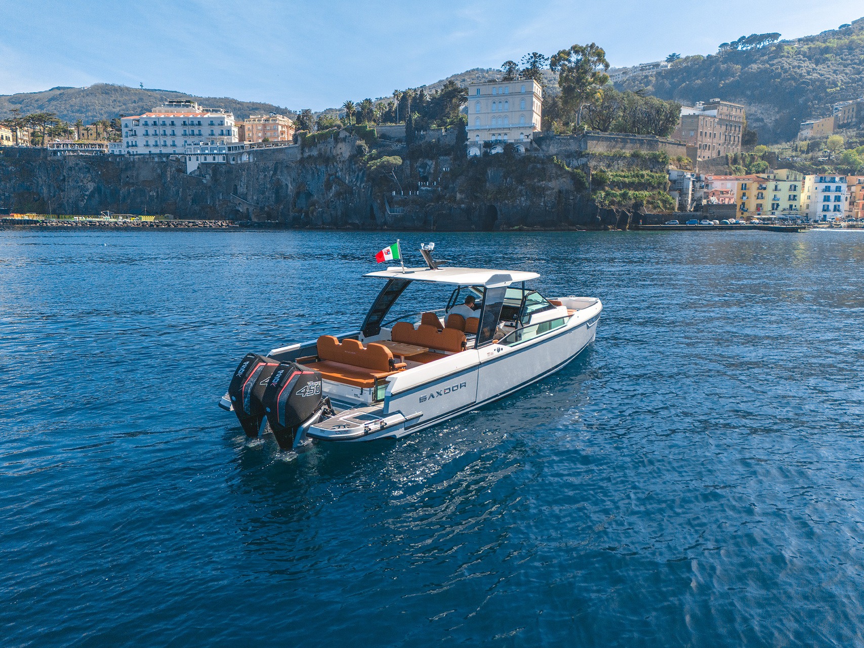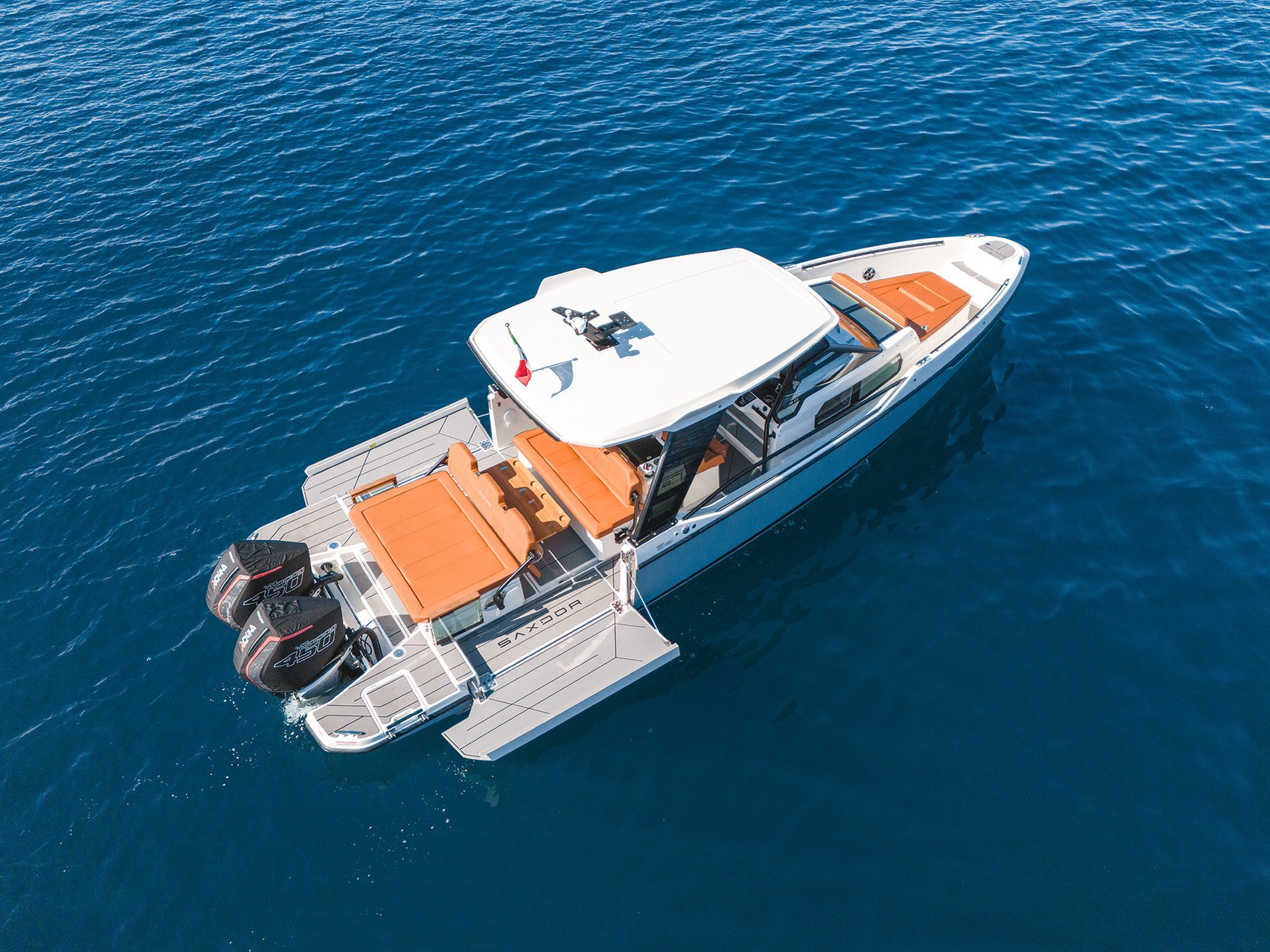 The Saxdor 320 GTO is a modern boat that stands out for its innovative design and dynamic performance. With elegant lines and a high-performance hull, it offers smooth and safe navigation, ideal for both calm and rough waters. Equipped with powerful outboard engines, it guarantees exceptional speed and maneuverability.